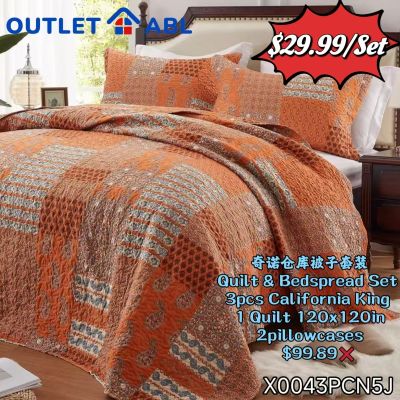 X0043PCN5J Quilt Bedspread Set California King 3pcs 120x120in