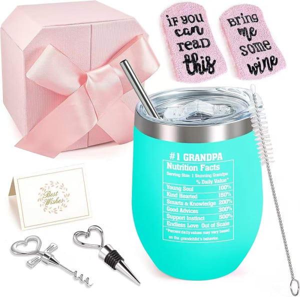 X002ZBTQD5 Wine Cup Gifts Box Set Pink Box Mintcream Cup 12oz