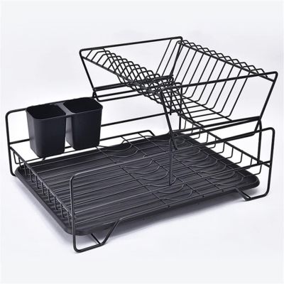 WS0120 DoubleLayer Drain Bowl Storage Rack Black
