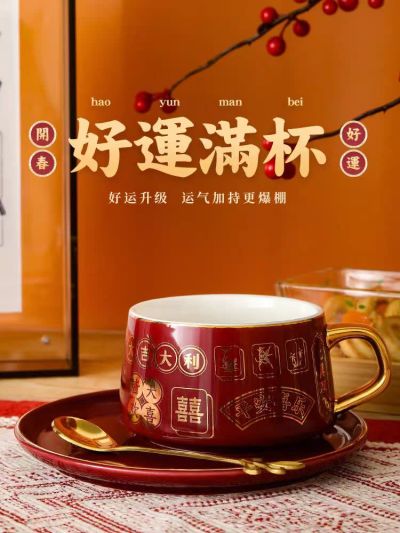 6975202307309 1659 Lanfei Ceramics Coffee Cup Gift Set Chinese Trend Red
