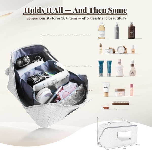 TB03WHITE Makeup Bag with Mirror White