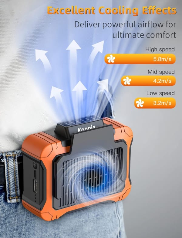 X003KB7IAH NF201 Solar Powered Waist Fan 10000mAh